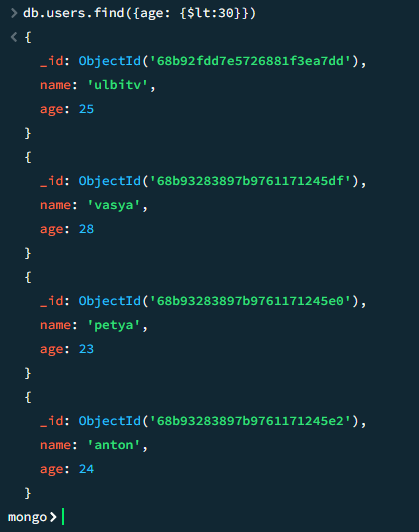 db.users.find({age: {$lt:30}})