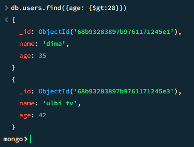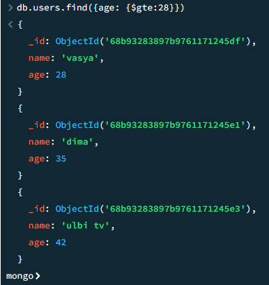 db.users.find({age: {$gte:28}})