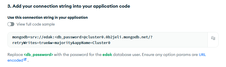 const client = new MongoClient('mongodb+srv://edak:admin@cluster0.0b2jeli.mongodb.net/?retryWrites=true&w=majority&appName=Cluster0')