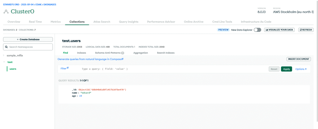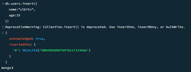 await users.insertOne({name: 'edvard', age: 19})