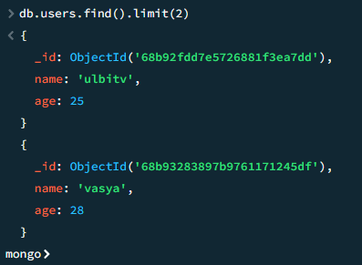 db.users.find().limit(2)