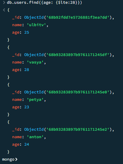 db.users.find({age: {$lte:28}})