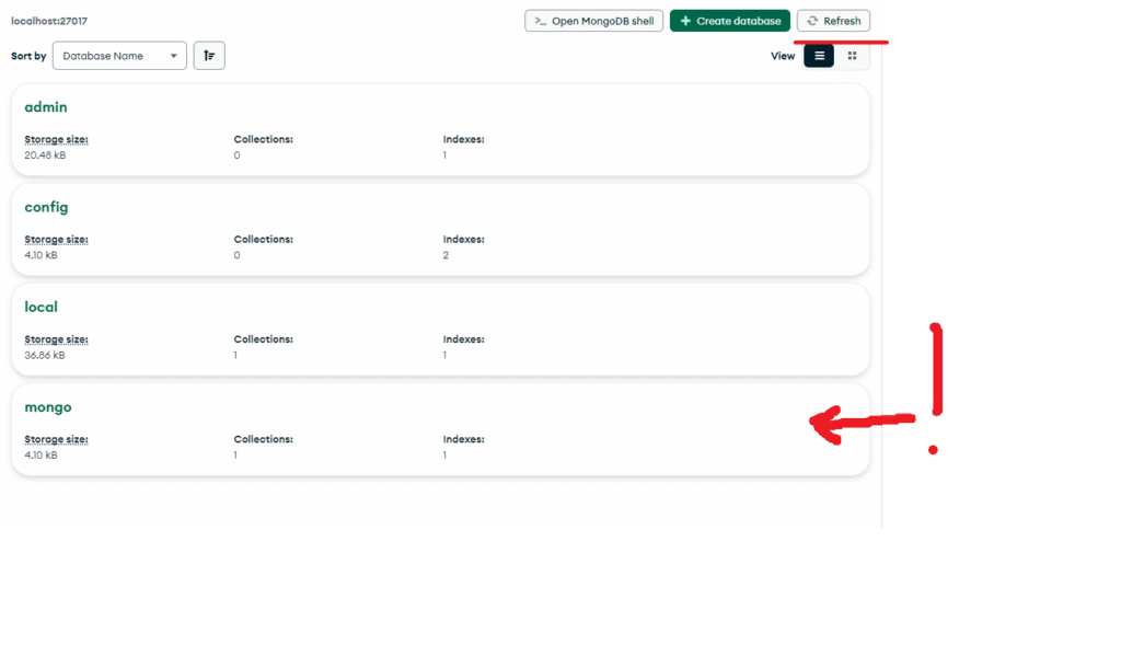 3.1 Vajuta „Refresh“, et näha enda loodud andmebaasi „users“.